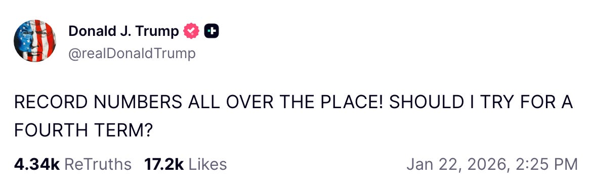 Meanwhile, Donny T is touting a “framework for a future deal” that would allow for a US military presence in Greenland, except (hot tip!) that deal already exists and was signed in 1951—back when Harry S. Truman was president, a house cost $8k, and the 22nd amendment establishing term limits was ratified.