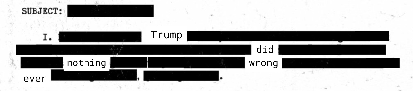 The release of the files hasn’t happened yet; Donny T did sign the bill on Wednesday night, but his DOJ may still heavily redact and/or withhold some of it due to “national security” loopholes, and they’ve got thirty days to do it. So we could—and let’s be real, probably will— end up with something like this: