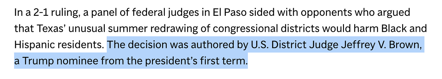 The recently redrawn Texas congressional maps hit a snag this week after a panel of federal judges struck them down 2-1 because they were “racially gerrymandered,” and the gorgeous lil cherry on top?