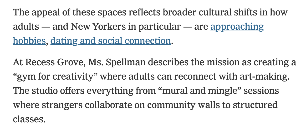 for the New York Times this week. Hot tip: Third spaces like these “art bars” have quickly become massively profitable in a post-Covid world where we are deeply starved for human connection and tactile work—not to mention, major brands like Bloomingdale’s and Coach are getting in on the trend with pop-ups and experiences, too.And MSNBC is changing its name to “MS NOW” (My Source News Opinion World????? Ok sure.) amid the corporate divorce from NBCUniversal, a really good idea that will undoubtedly succeed like its predecessors IHOB and Max.
